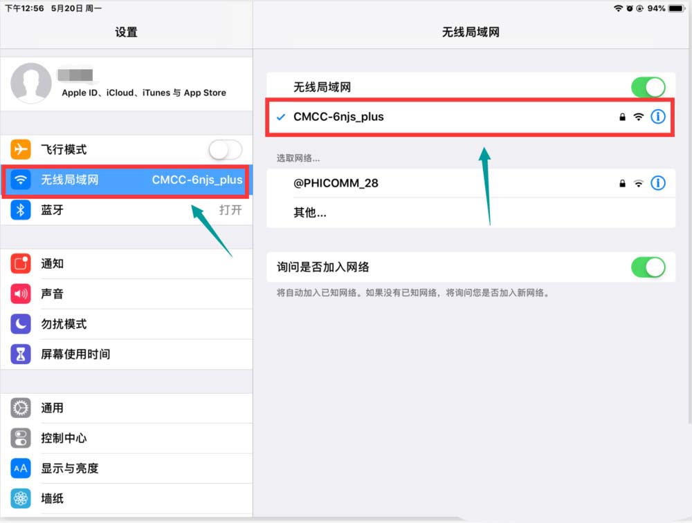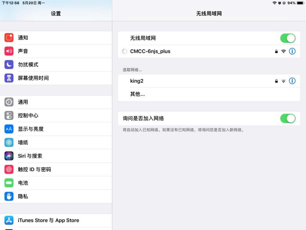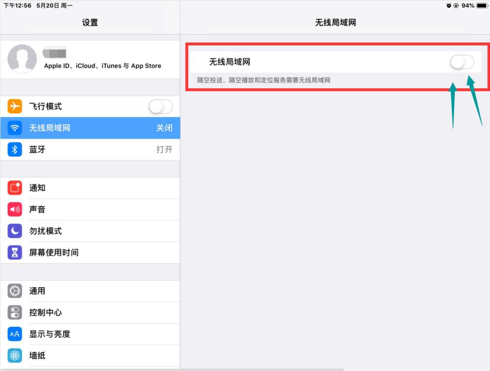 1、網(wǎng)絡(luò)不好也會(huì)導(dǎo)致喊嘿,Siri的時(shí)候不出來,我們現(xiàn)在打開iPad的設(shè)置界面,點(diǎn)擊無線局域網(wǎng)圖標(biāo),將網(wǎng)絡(luò)關(guān)閉。