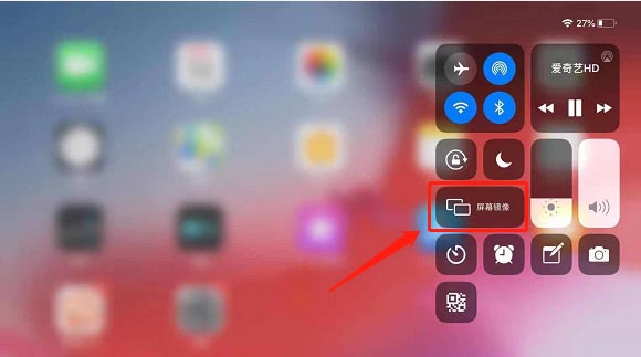 1、將iPad的控制中心調出來,點擊“屏幕鏡像”;