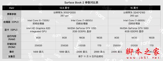 Surface Book 2起售價(jià)為1499美元,15英寸頂配版本售價(jià)為3299美元,兩種尺寸7大版本都將于11月9日開(kāi)啟預(yù)訂。