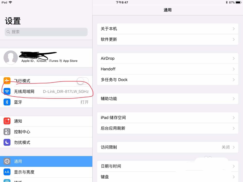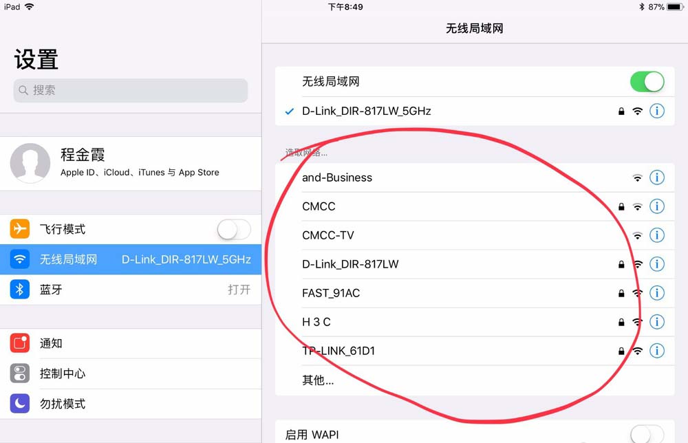 2、點(diǎn)擊無(wú)線局域網(wǎng),如下圖