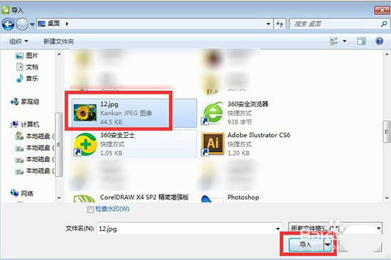 6、在CDR空白處點擊左鍵,圖片即可導入進來了。