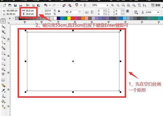 3、在空白處隨便畫一個矩形后在編輯欄輸入矩形的寬高值按下Enter鍵。(這個數(shù)值根據(jù)自己需要的模板大小來設置)