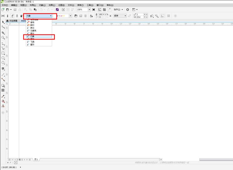 2、點擊【藝術筆工具】,選擇【噴涂】項,點擊【對象】;