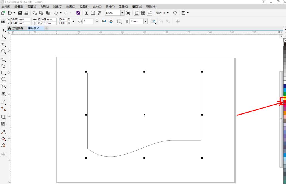 4、選中弧線吊旗圖案,鼠標右鍵點擊右邊色板的中色塊,將箭頭設置為我們需要的顏色即可。