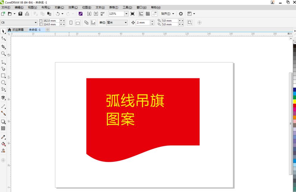3、設置完成后,將弧線吊旗圖案繪制出來;
