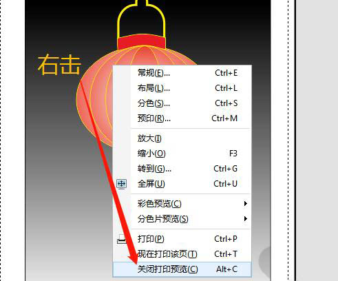 7、退出打印預(yù)覽,單擊退出圖標(biāo)或右擊選關(guān)閉打印預(yù)覽。