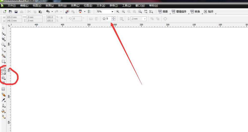 1、新建文件設置多邊形。首先啟動CorelDRAW軟件,新建一個文件,然后在工具欄選擇多邊形工具,在屬性欄設置6