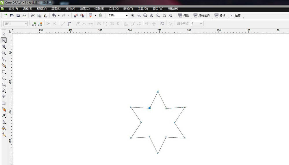 5、選擇外圈的節點。用形狀工具選擇節點,按住SHIFT鍵可以加選,直到選擇外圈的六個節點位置