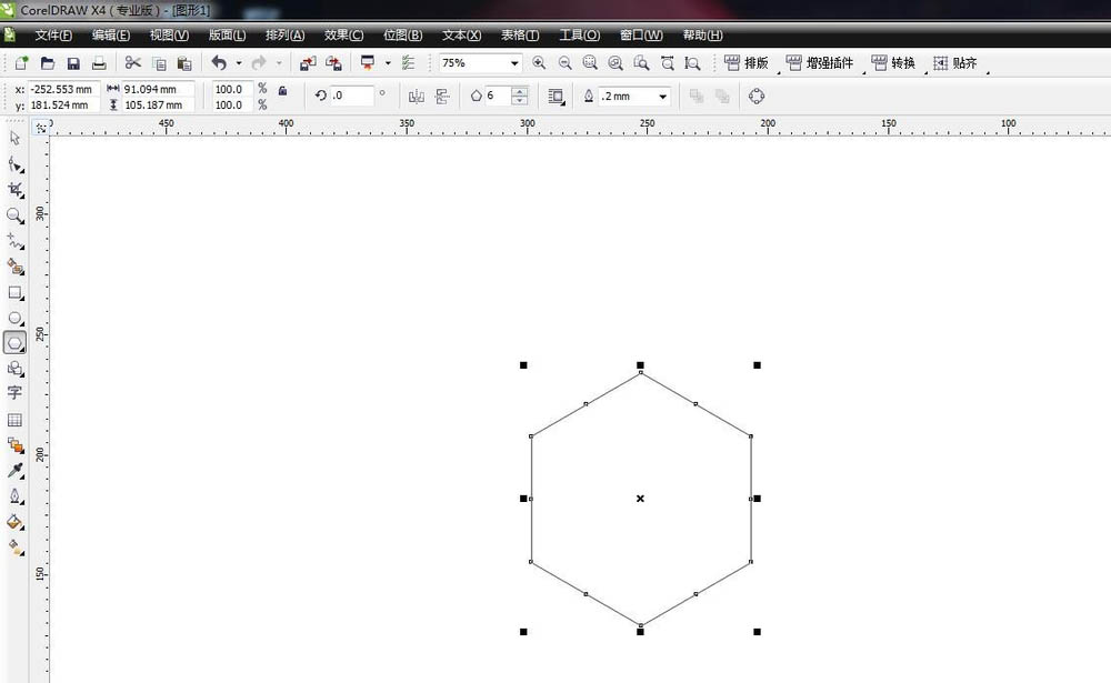 2、繪制一個正六邊形。在工作區拖動鼠標繪制,按住CTRL鍵可以繪制一個正的六邊形