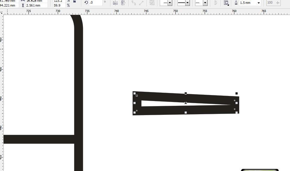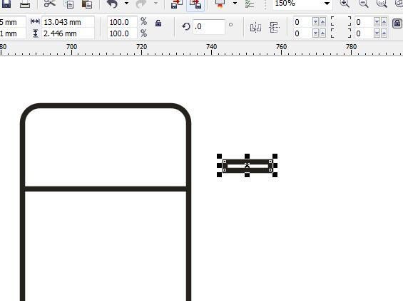2、設置圓角,加粗輪廓。選擇這個矩形,在屬性欄中將輪廓線加粗設置為1.5,然后用形狀工具調整圓角,直接在角的位置進行拖動,在中間繪制一條直線。