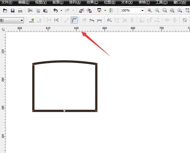 3、直線轉(zhuǎn)化為曲線。選擇上面的一條邊,然后用形狀工具選擇,在屬性欄中找到曲線的小圖標(biāo),點(diǎn)擊一下,變?yōu)榍?/strong>線,往上拖動(dòng)一點(diǎn)