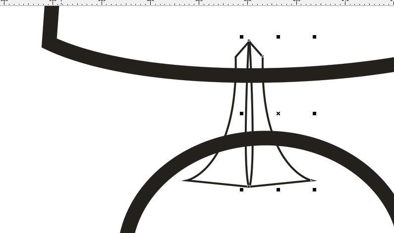7、執(zhí)行水平翻轉(zhuǎn)命令。將選中的圖形進(jìn)行水平翻轉(zhuǎn),然后移動(dòng),讓兩個(gè)圖形中間的部分相交,如下圖所示,然后點(diǎn)擊屬性欄中的焊接為一個(gè)整體