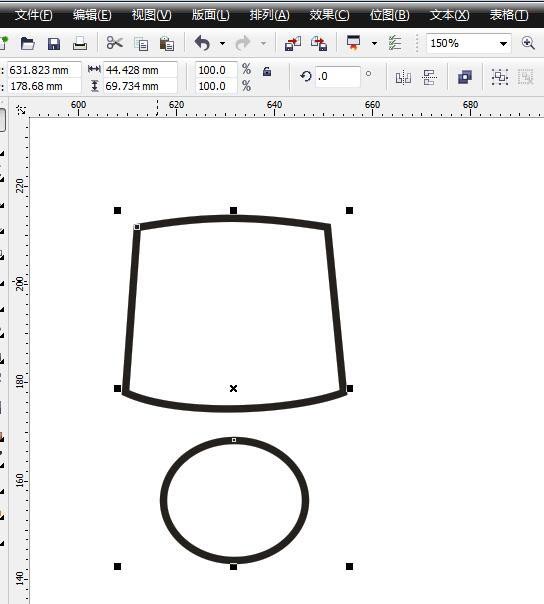 5、繪制一個(gè)圓形。在下方繪制一個(gè)圓形,加粗輪廓變?yōu)?.5,然后跟上邊的圖形執(zhí)行垂直居中對(duì)齊