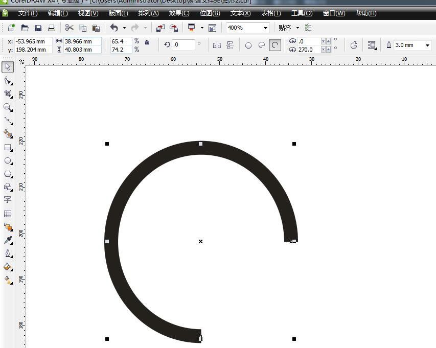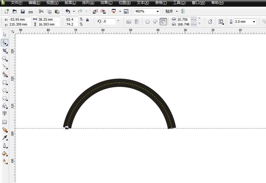 2、加粗輪廓設置弧線。將這個圓形選中,然后將輪廓線加粗,設置為1.5,在屬性欄有三個圖標代表著三種不同的形態(tài),我們選擇第三種弧形
