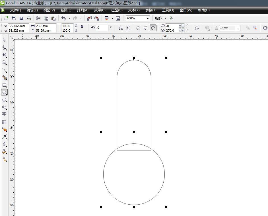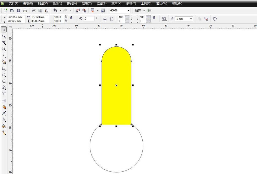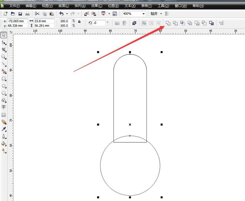 4、復制,焊接為一個整體。將上方的圓角矩形復制一份,按小鍵盤上的加號鍵,然后選擇矩形和下方的圓形,在屬性欄中選擇焊接為一個整體