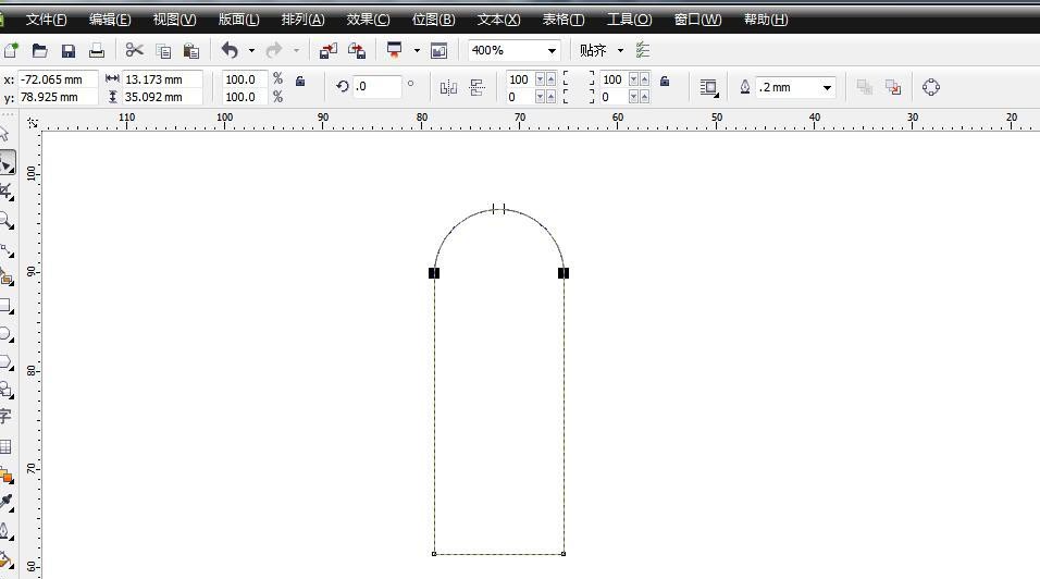 2、調節為圓角。選中這個矩形,然后用形狀工具,點擊右上角的點,然后SHIFT鍵可以加選右上角的點,黑色即為選中,拖動調節為圓角最大值