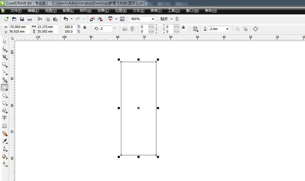 1、首先繪制一個矩形。啟動CorelDRAW軟件,新建文件,然后在工具欄中選擇矩形工具,在工作區拖動鼠標,即可繪制