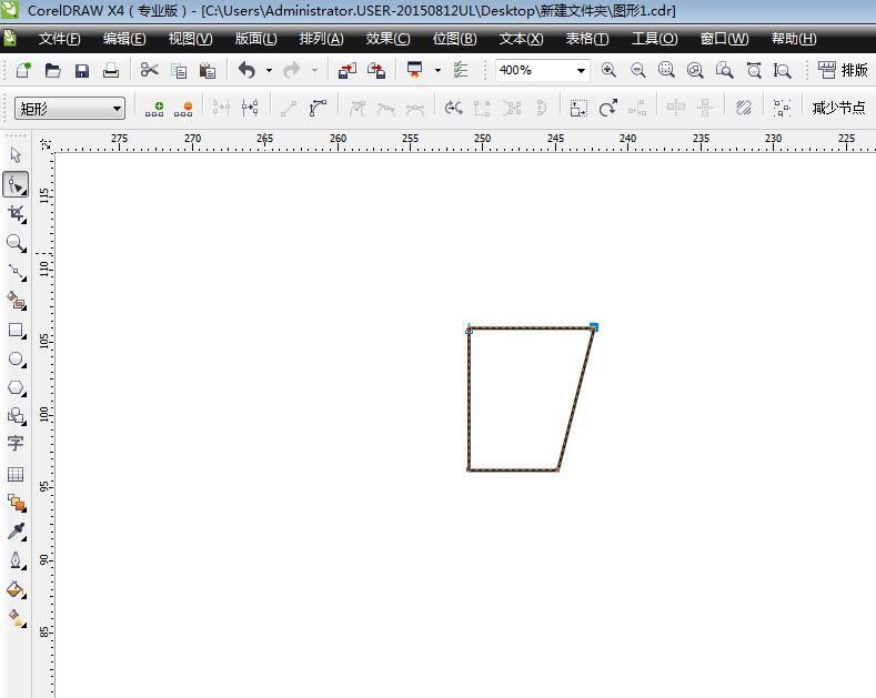 6、調節節點。使用形狀工具對節點進行調節,將右上角的節點向右側移動,做出直角梯形的效果,加粗為1.5