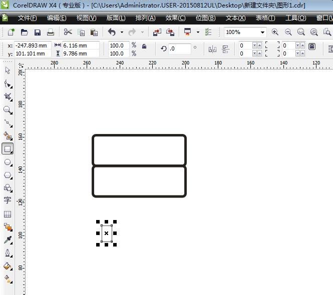3、移動復制一個。選擇這個圓角矩形,按住CTRL鍵可以等直線的移動,移動的同時不要松開鼠標,點擊鼠標右鍵,即可復制一份