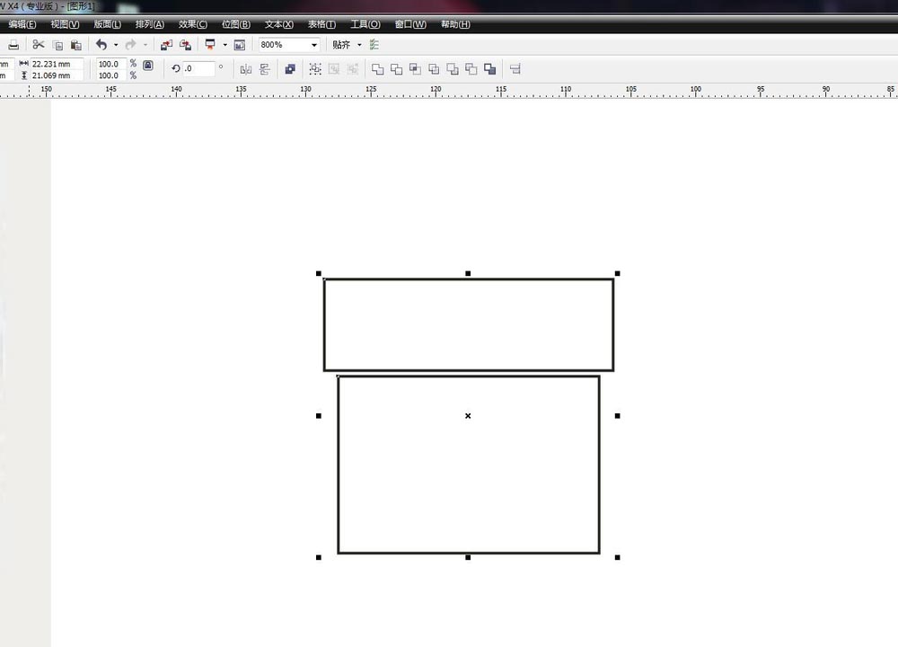 在工具欄中選擇矩形工具,繪制一個長一些的矩形,然后在這個矩形的下方在繪制一個稍微短點,但是更方一點的矩形,兩個矩形垂直居中對齊