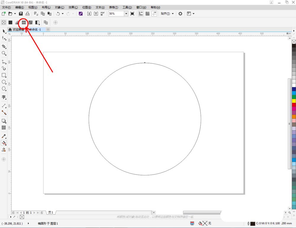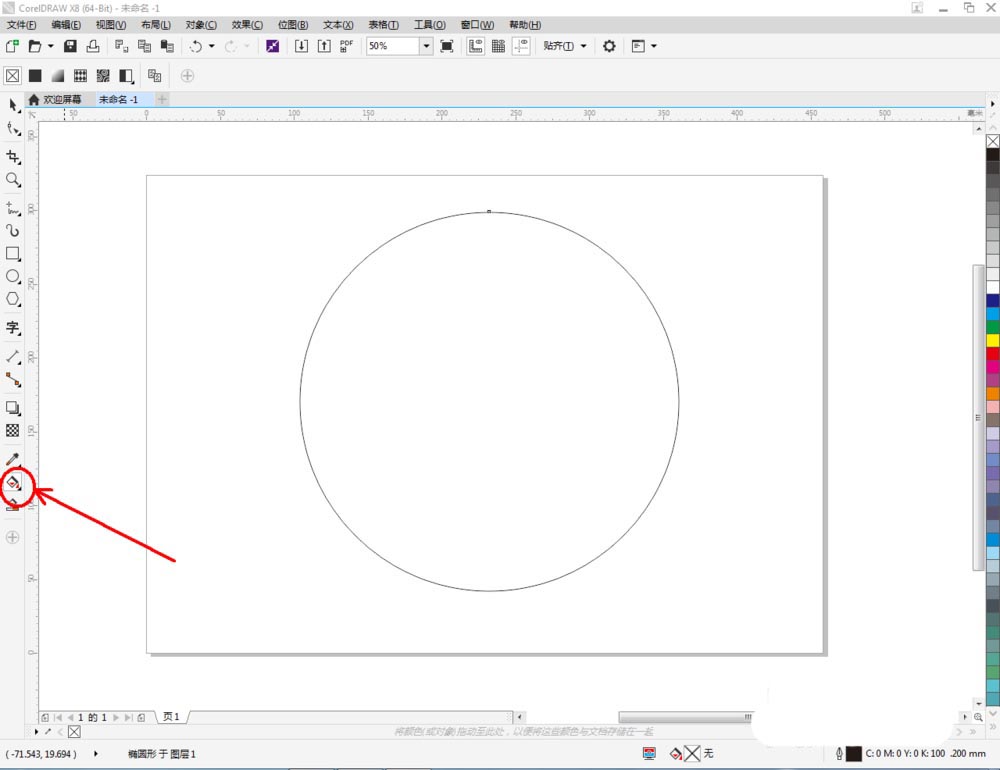 2、點(diǎn)擊【橢圓形工具】,在作圖區(qū)域繪制一個圓形圖案;