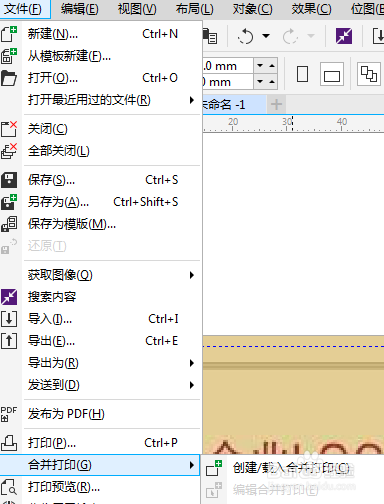 2、點擊文件,有個“合并打印”的選項,創建/載入合并打印。