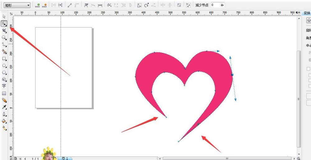 4、選擇形狀工具,對節點進行調整,做出一個卡通一點的心形,不要這么正規