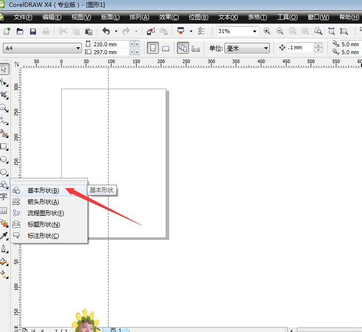 1、首先啟動軟件,新建一個文件,在工具欄中選擇基本形狀