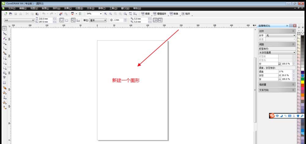 2、打開(kāi)CorelDRAW X4 的軟件,新建一個(gè)新的圖形,如圖: