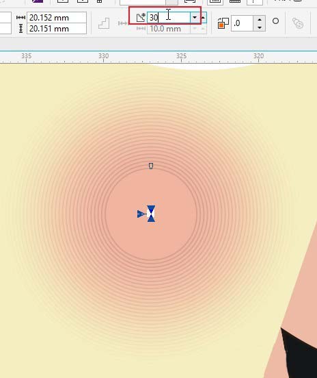 4、點擊調和工具,選中小圓,向外拖拉到大圓;間距調整為30,數值越大,邊緣越柔和。