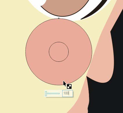 1、首先點擊橢圓工具,按住“ctrl”鍵,在人物臉上畫出一個正圓,填充顏色。
