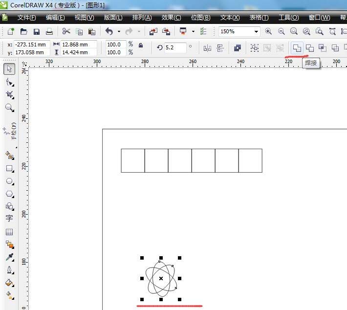 2、畫花朵形狀。用橢圓工具,畫出花瓣的橢圓,選擇一個按住鼠標,旋轉復制出三個。全選3個橢圓形,點擊焊接工具,得到花朵外輪廓。繼續橢圓工具畫出花蕊,用手繪工具畫出花根。手繪工具畫出葉子形狀,選擇葉子,用形狀工具調整形狀,按住節點搖桿可以調節方向形狀。手繪工具畫出葉子根莖,完成葉子部分,復制一個擺好葉子位置。
