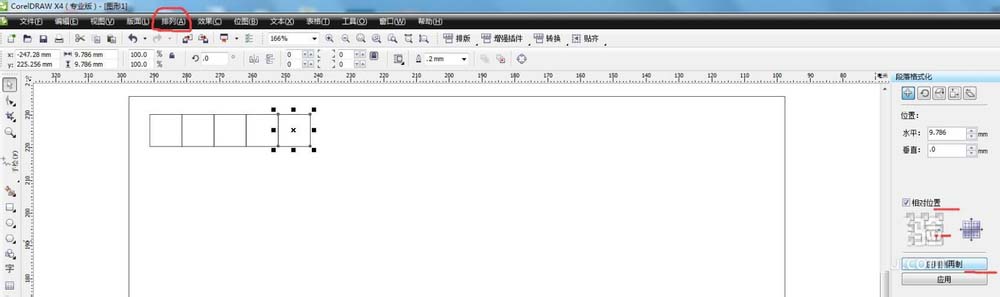 1、打開軟件,用矩形工具畫框,設置好尺寸。用矩形工具畫小框(郵編號碼位置),選擇小框→排列→變換→位置→勾選右邊方塊→應用再制。