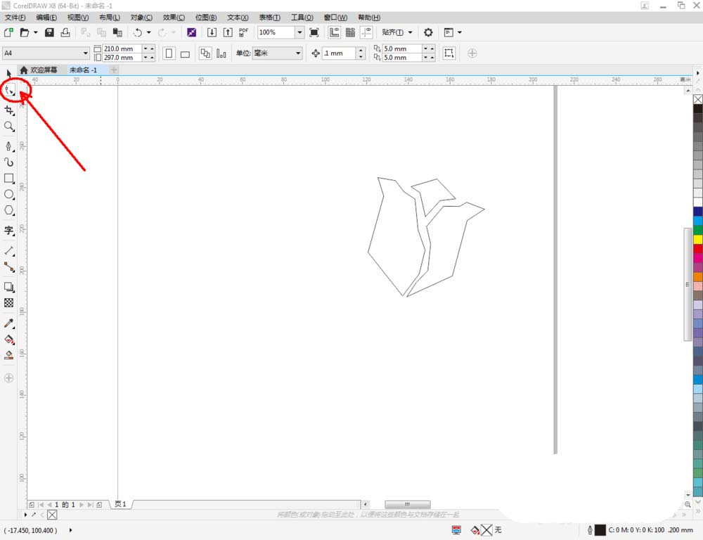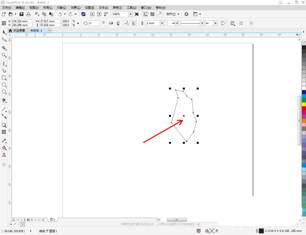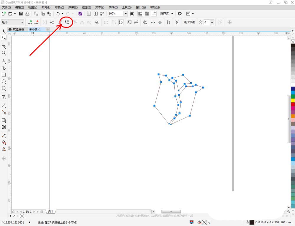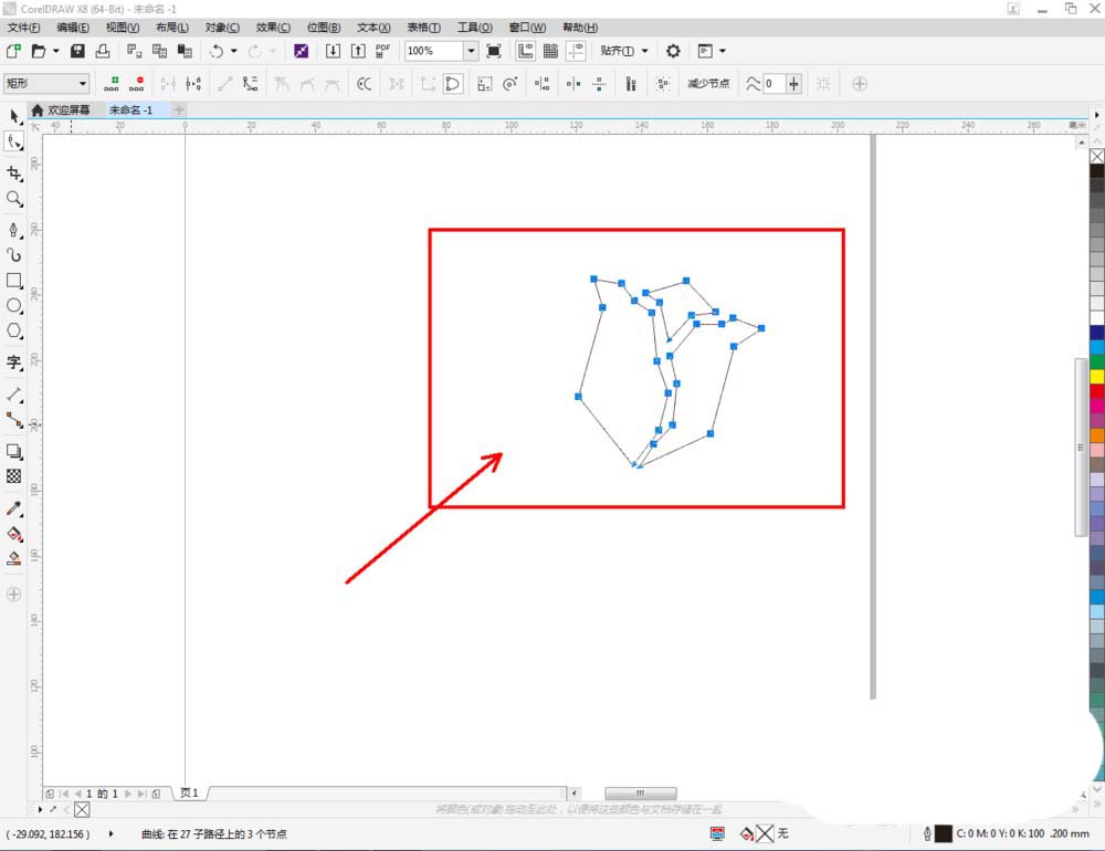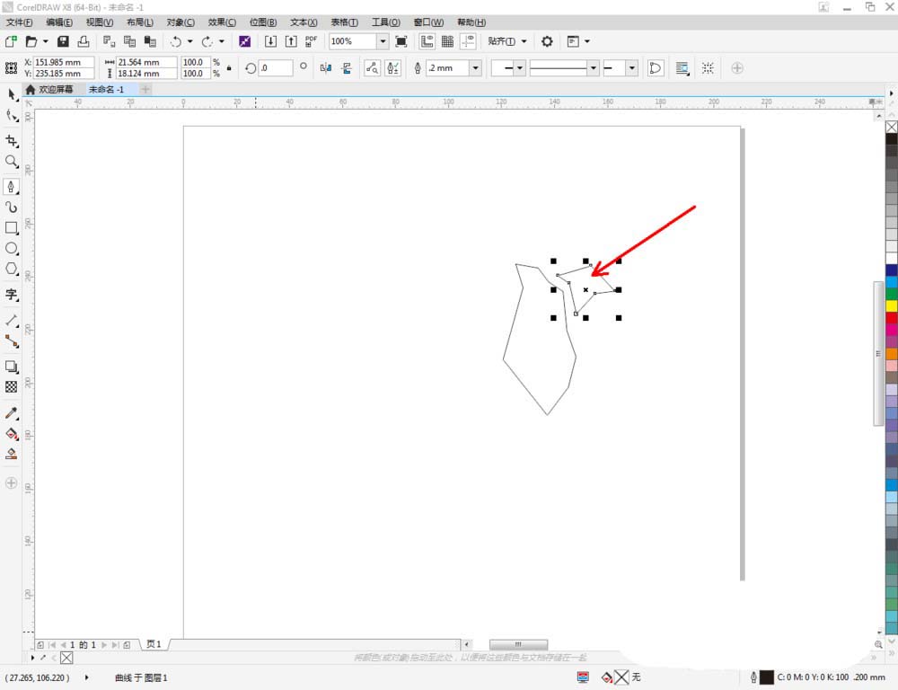 3、點(diǎn)擊【形狀工具】,框選圖案上的節(jié)點(diǎn),點(diǎn)擊【轉(zhuǎn)化為曲線】將節(jié)點(diǎn)轉(zhuǎn)曲。完成后,選中圖示圖案上的節(jié)點(diǎn),點(diǎn)擊【平滑節(jié)點(diǎn)】將節(jié)點(diǎn)進(jìn)行平滑處理并調(diào)整好控制點(diǎn),完成玫瑰花花瓣圖案的制作(如圖所示);