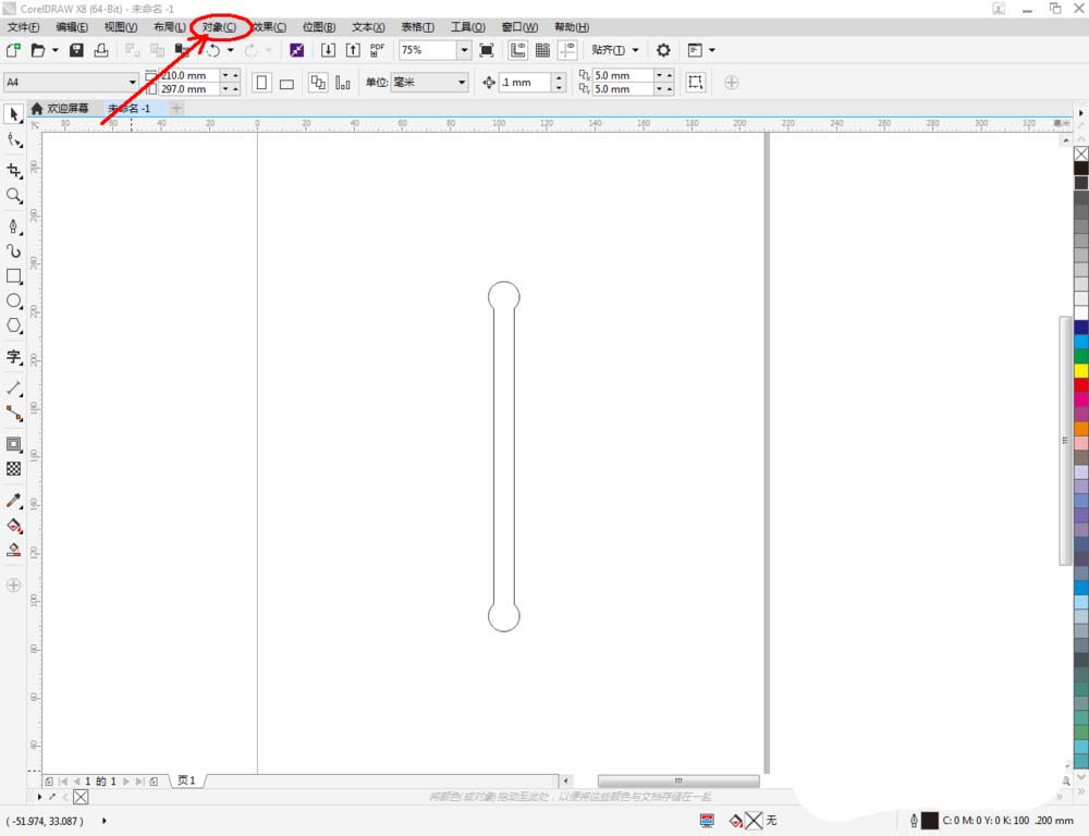 2、點擊【矩形工具】,在作圖區域繪制一個矩形圖案后,點擊【橢圓形工具】在矩形圖案端部繪制一個圓形圖案。按圖示拉動復制出一個圓形圖案副本并將其移動到矩形圖案的另外一端后,選中所有圖案,點擊【合并】將圖案合并為一體(如圖所示);