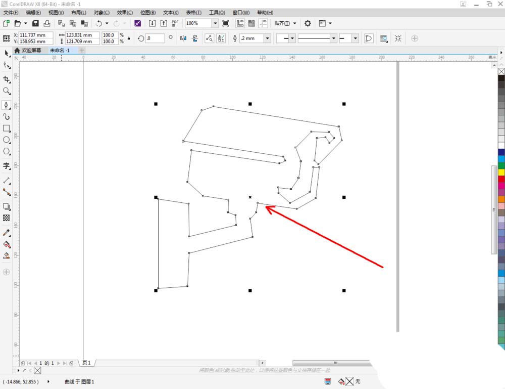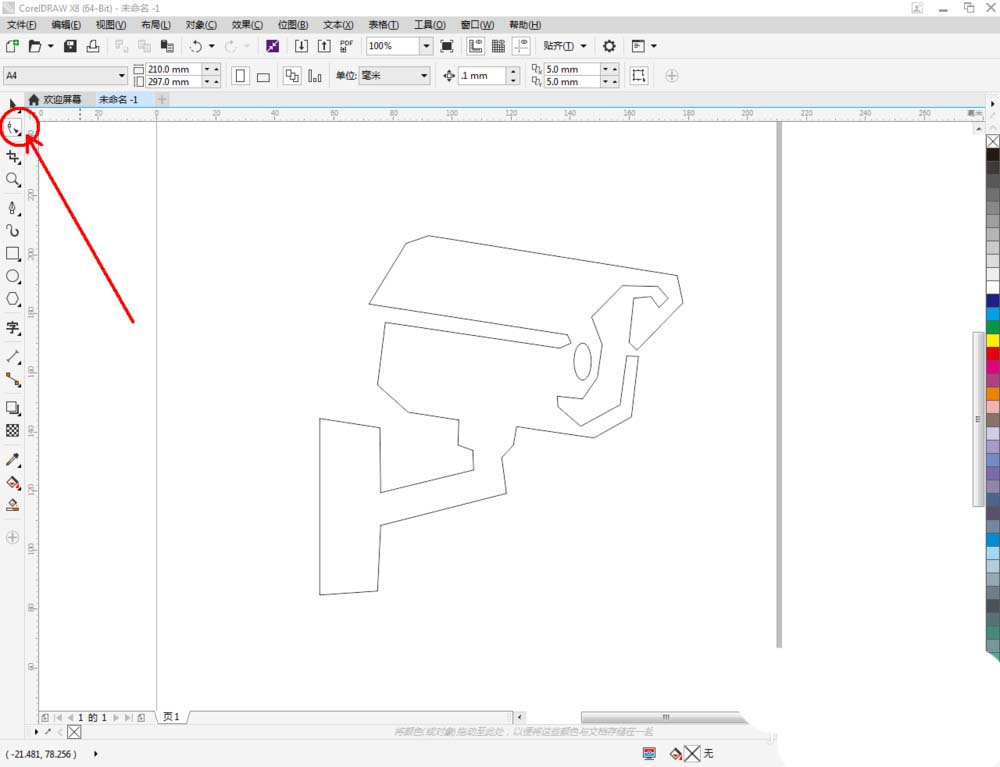 3、選中多邊圖案,點擊【形狀工具】,選中圖案上的所有點,點擊【轉換為曲線】將圖案轉曲后,按圖示調整控制點,完成整個監控攝像頭輪廓圖案的繪制(如圖所示);