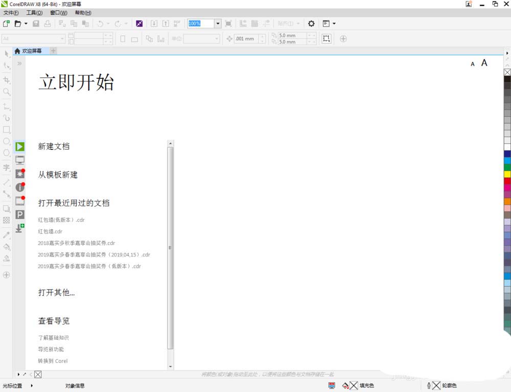 1、打開CorelDRAW X8 軟件,點擊【新建文檔】,按圖示參數新建一個cdr文檔(如圖所示);