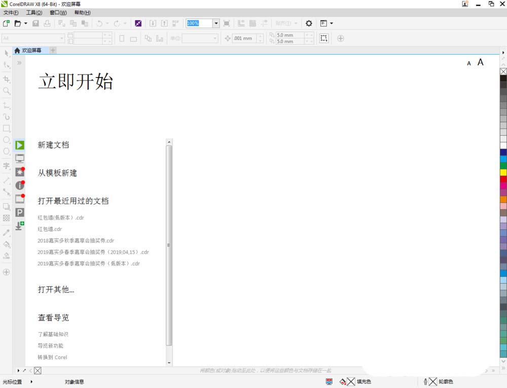 1、打開CorelDRAW X8 軟件,點擊【新建文檔】,按圖示參數新建一個cdr文檔(如圖所示);