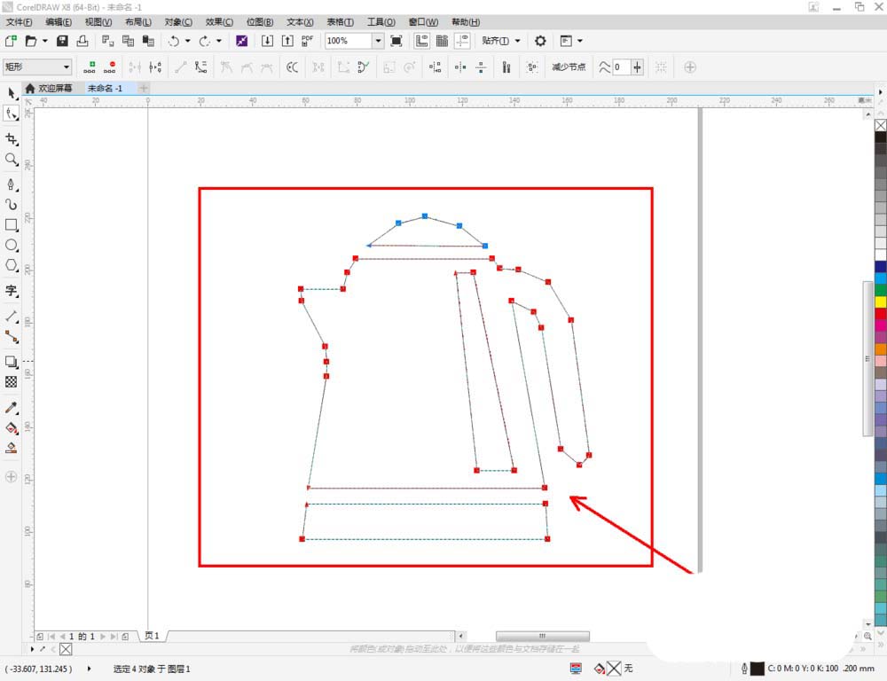3、選中多邊圖案,點擊【形狀工具】,選中圖案上的所有點,點擊【轉換為曲線】將圖案轉曲后,按圖示調整控制點,完成整個電熱水壺輪廓圖案的繪制(如圖所示);