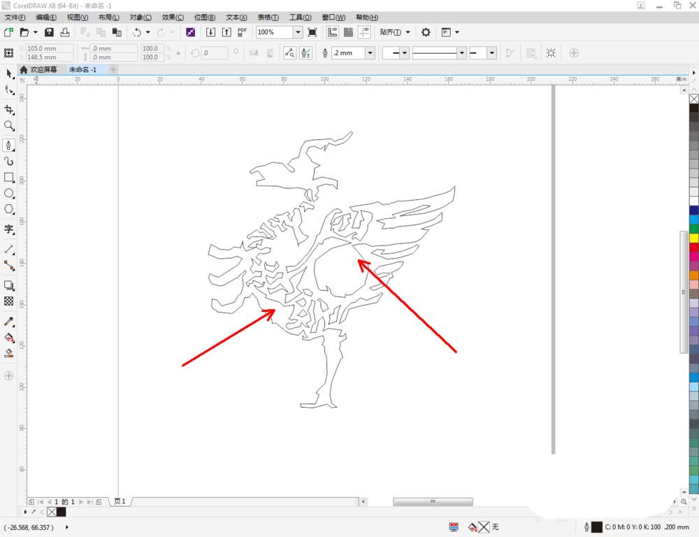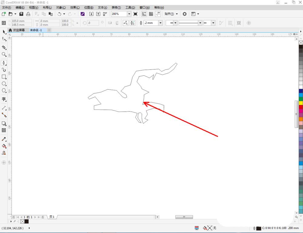 2、點擊【鋼筆工具】,在作圖區域繪制出朱雀的大致輪廓的多邊圖案。主體多邊圖案繪制完成后,繼續對細節部分圖案進行繪制(如圖所示);