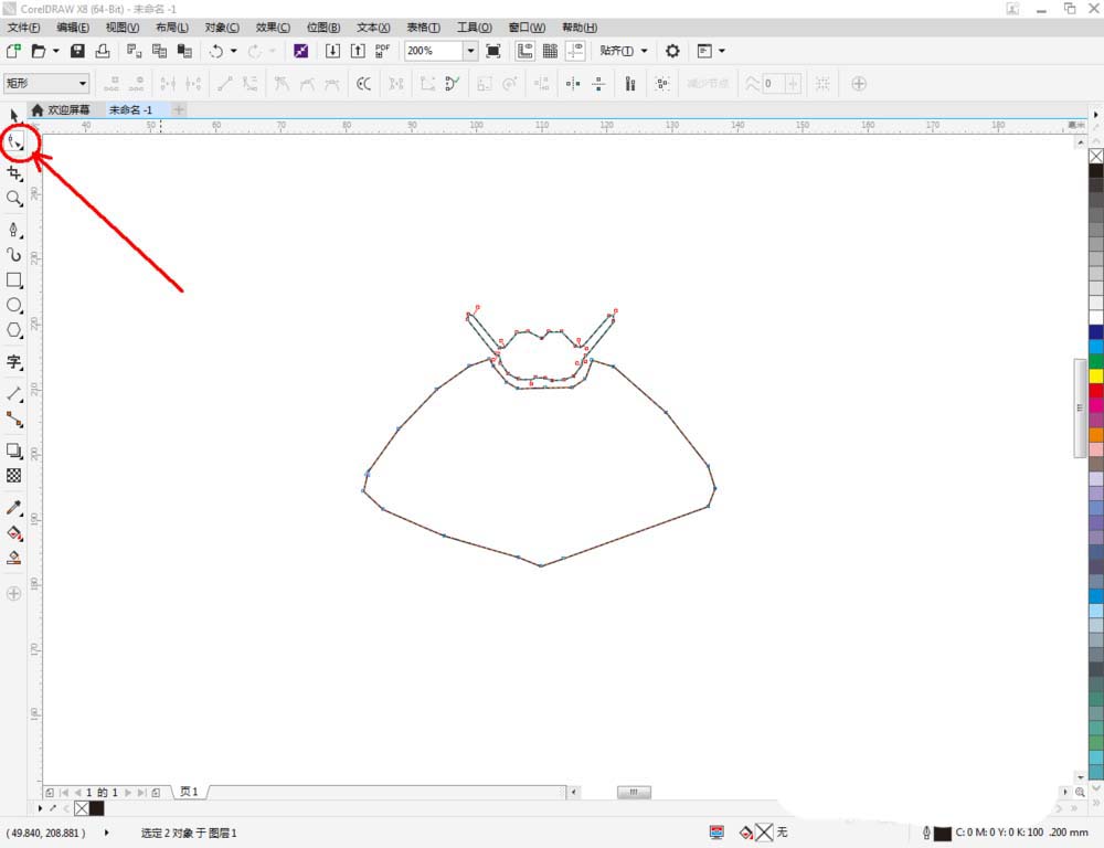 2、首先我們先對巨蟹座身體部分進行繪制。點擊【鋼筆工具】,使用鋼筆線段勾勒出身體部分的輪廓。點擊【形狀工具】,選中圖案上的所有點,同樣點擊【轉換為曲線】將圖案轉曲后,按圖示調整控制點,完成整個身體部分圖案的繪制(如圖所示);