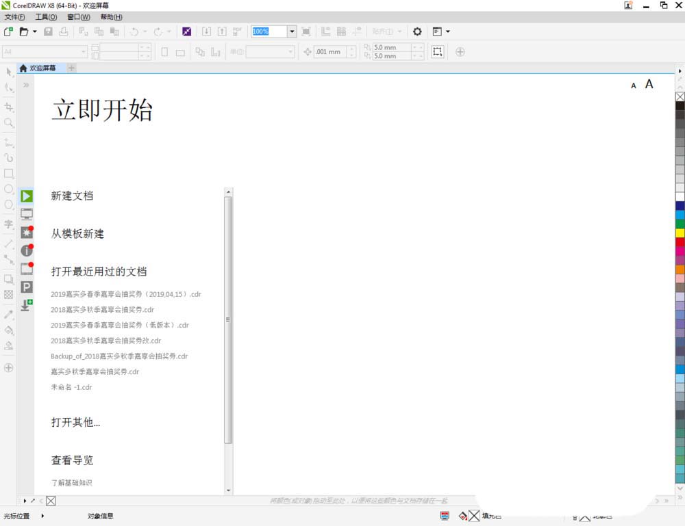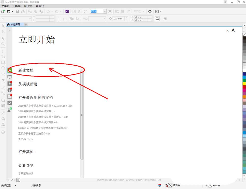 1、打開CorelDRAW X8軟件,點擊【新建文檔】,按圖示參數新建一個cdr文檔(如圖所示);