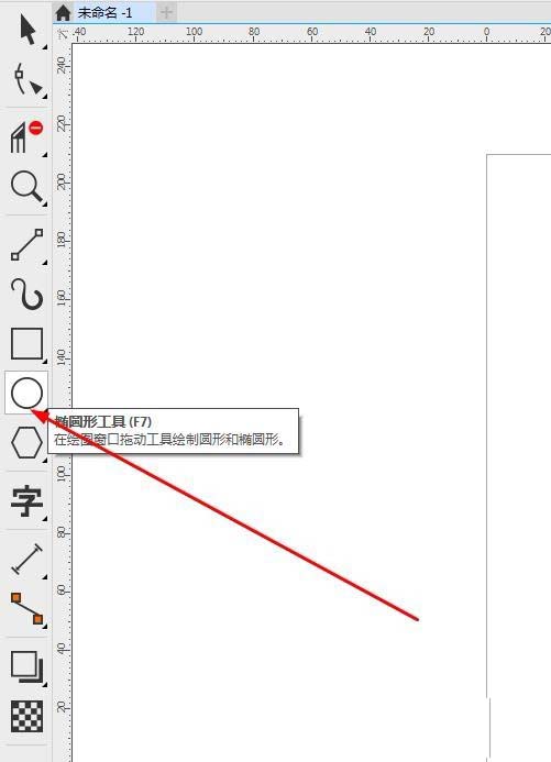 2、在工具箱中,找到橢圓繪制工具,快捷鍵是F7,按住鍵盤上的ctrl鍵,在工作區拖動鼠標可以繪制一個正圓,如圖所示