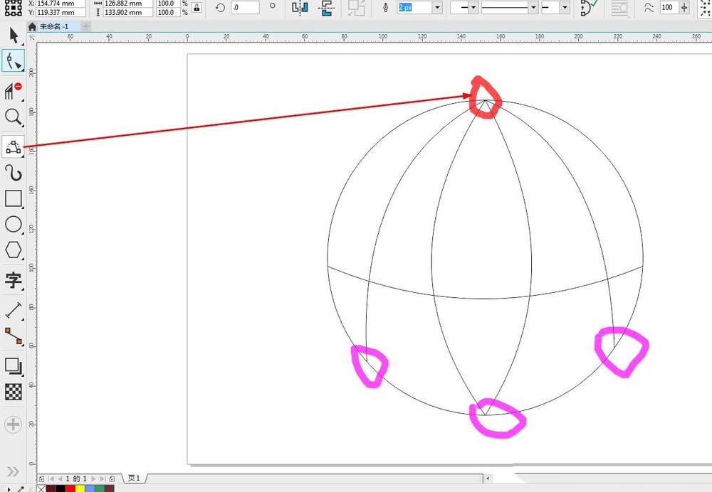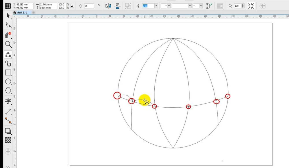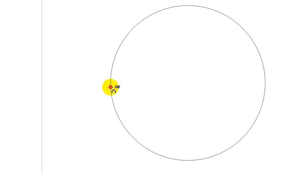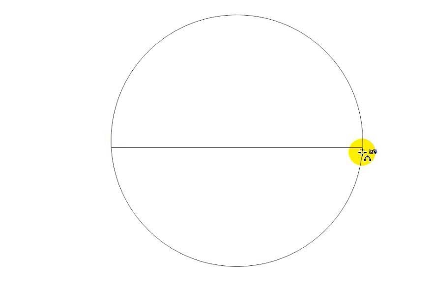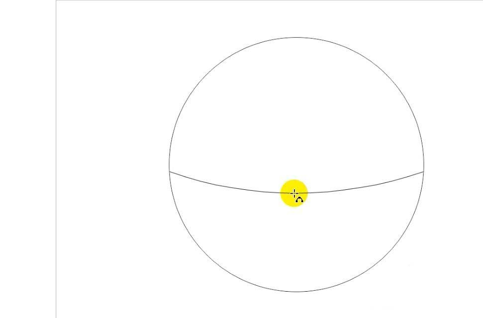 4、定義曲線的起始點和結束點,在圓形左側如圖位置,開始曲線的位置單擊,然后按住shift鍵,拖至要讓曲線結束的位置,圓的右側交點,然后松開鼠標按鈕,在要作為曲線中心的位置單擊。
