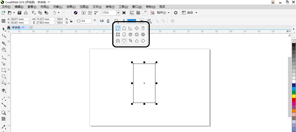 7、此時在點擊“形狀工具”按鈕后對矩形的角度進行調整。