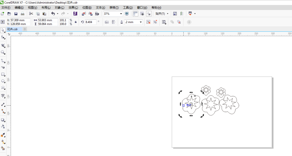5、使用選擇工具全選做好花朵,接著使用”再制“復(fù)制幾個(gè),再來(lái)使用選擇工具調(diào)整花朵尺寸和位置