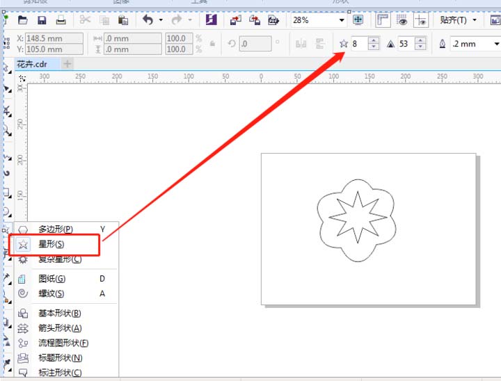 4、使用星型工具,輸入?yún)?shù)8,繪制成八角形作為花蕊