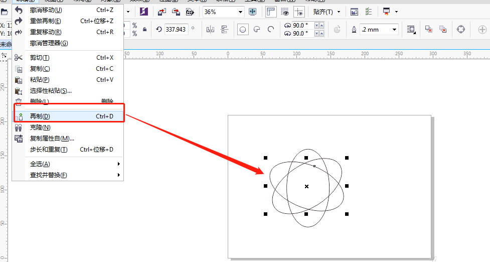 2、然后“再制”兩個(gè)橢圓,接著使用選擇工具復(fù)制旋轉(zhuǎn)兩個(gè)橢圓