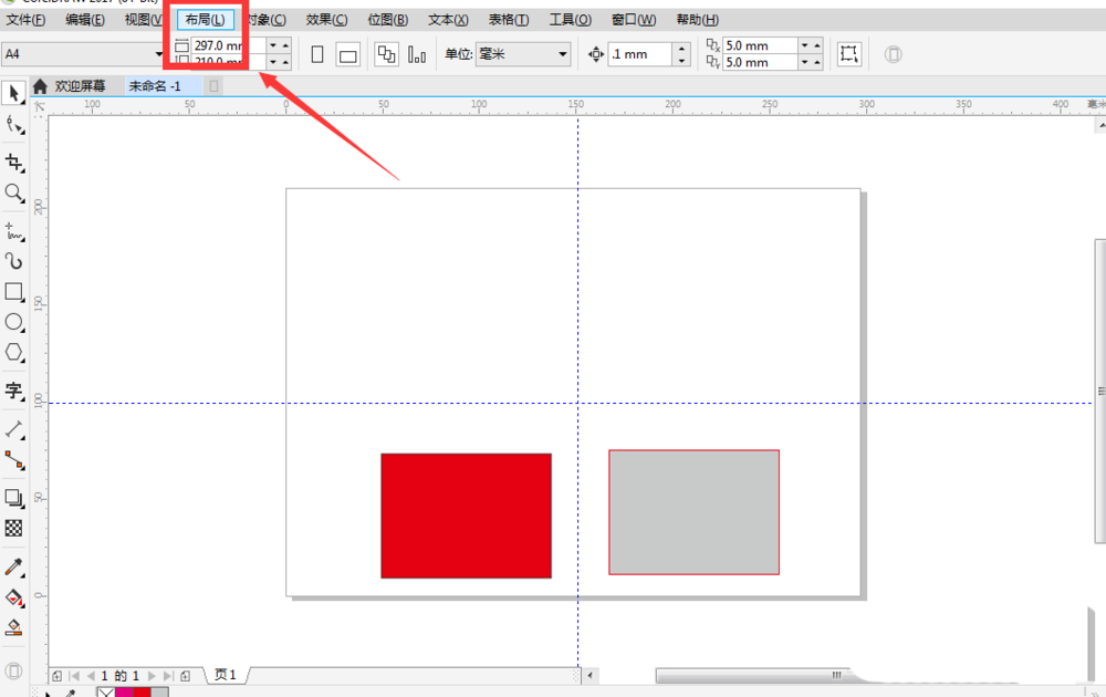 2、現在默認的參考線是藍色的,然后打開布局,如圖所示