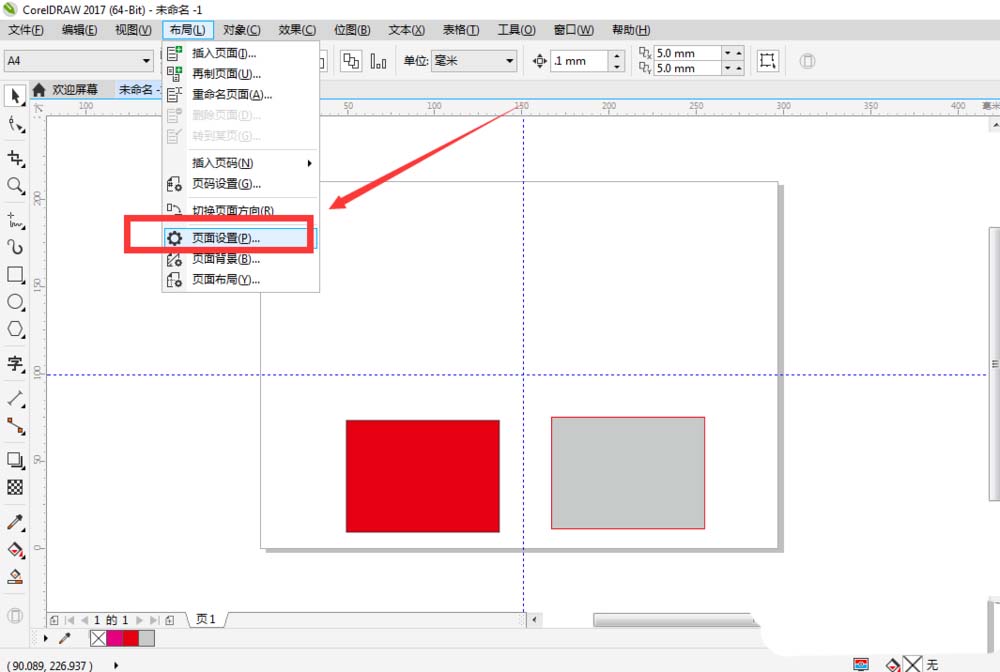 3、然后打開布局菜單,選擇其中的頁面設置菜單,如圖